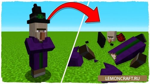 После установки мода Exploding Mobs в игру майнкрафт станет играть немного веселее. Теперь мобы после своей смерти будут не просто падать, а разлетаться на кучу кусков.